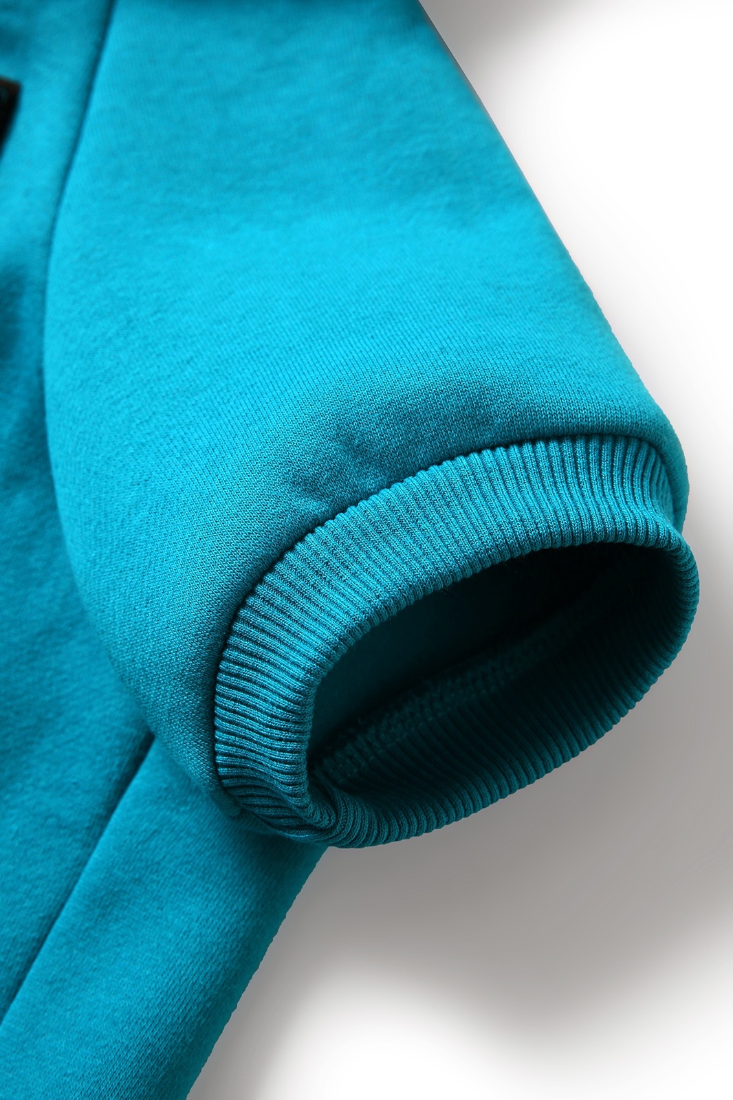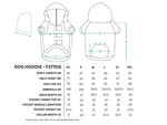 The back of the hoodie features an opening secured with Velcro, allowing it to wrap around and fasten under the dog's belly with adjustable support